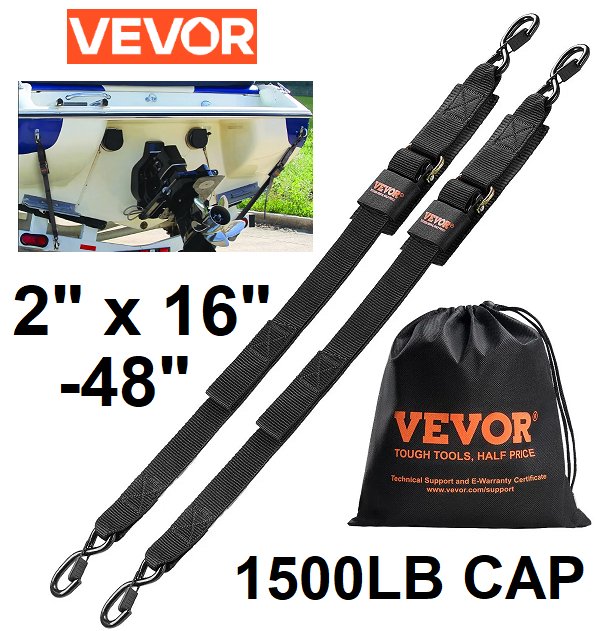 2pk vevor Retractable tie down Ratchet Straps with Security Lock hooks - 2" x 16 to 48" - 1500lb cap - black (MODEL: bts5004)