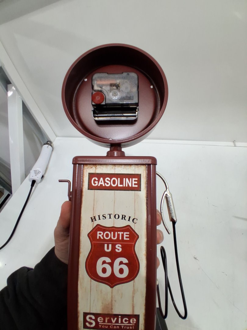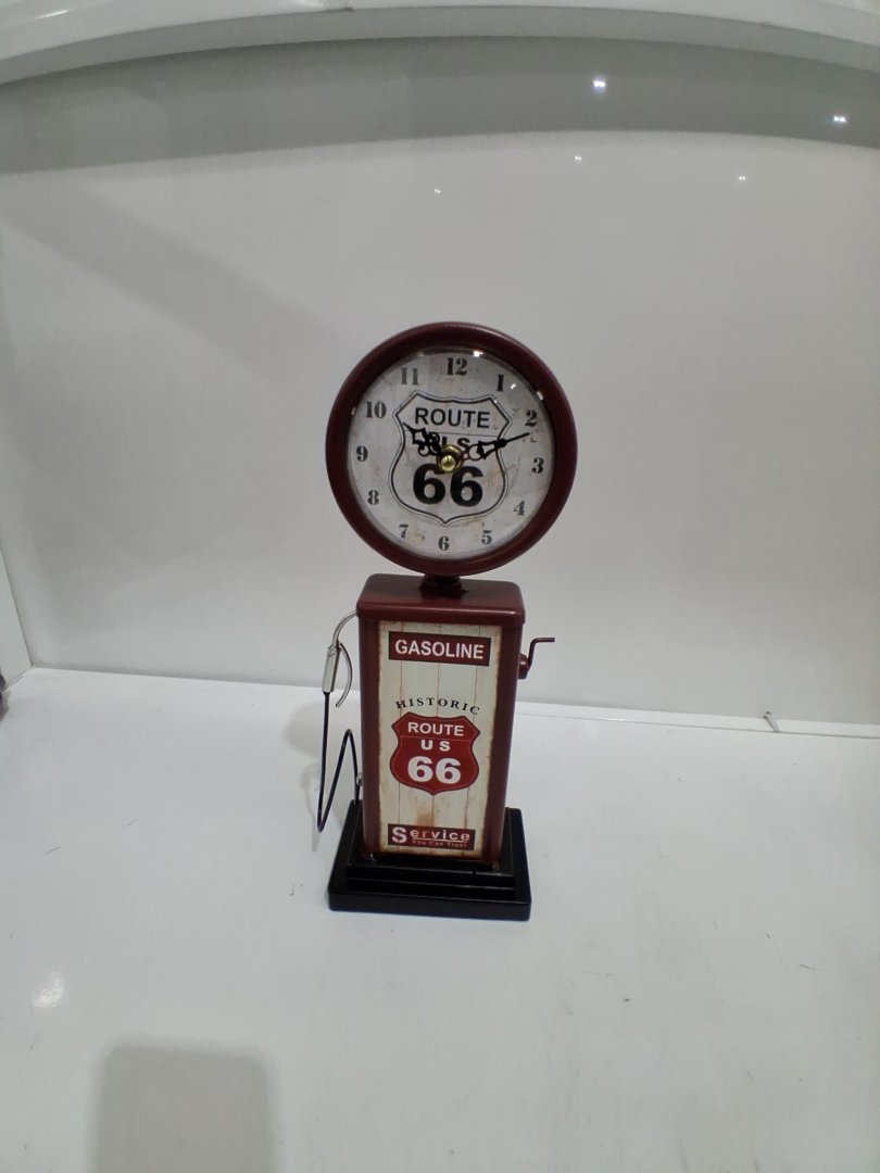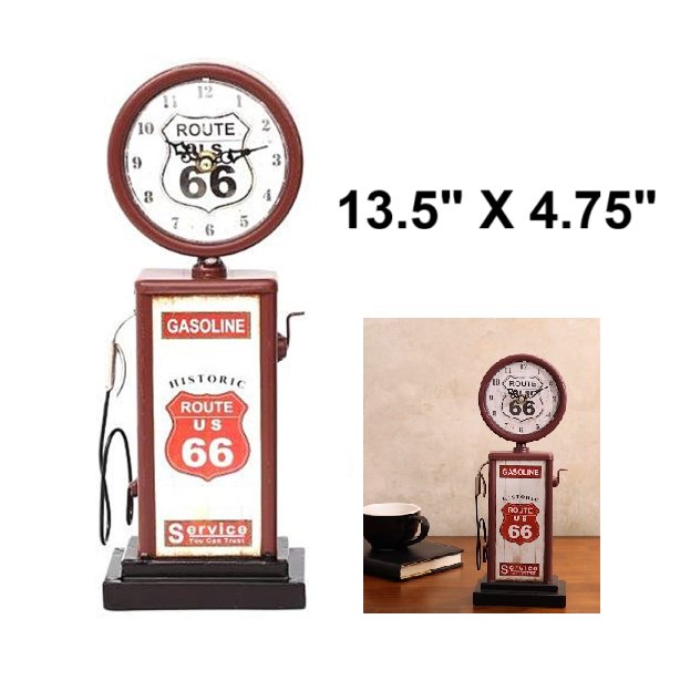 lily's home old route 66 gas pump clock- metal silent non-ticking quartz movement - 13.5" X 4.75" -red/brown (model: sw1010)