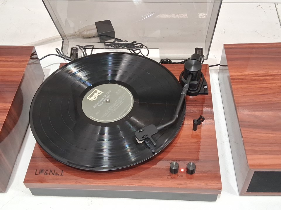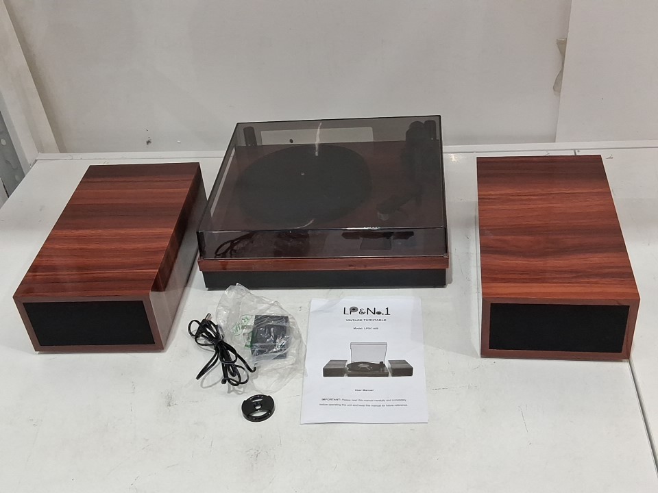 LP&NO.1 RETRO BELT-DRIVE BLUETOOTH TURNTABLE WITH STEREO SPEAKERS - 3 SPEED VINYL RECORD PLAYER - WALNUT (MODEL: LPSC-008)