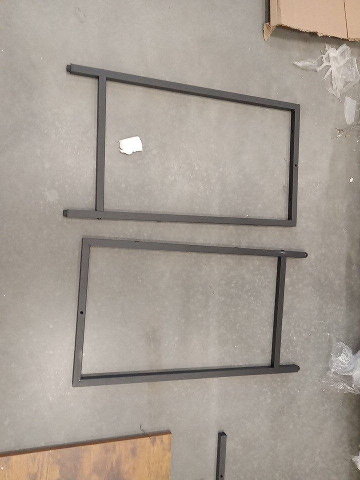 we have found some fraying / scuff marks on this item indicating previous assembly, we have found that this item is missing both part D pieces as seen in the photo taken of the manual below. we are unsure if this item will be able to be assembled with these missing pieces. see photos below.