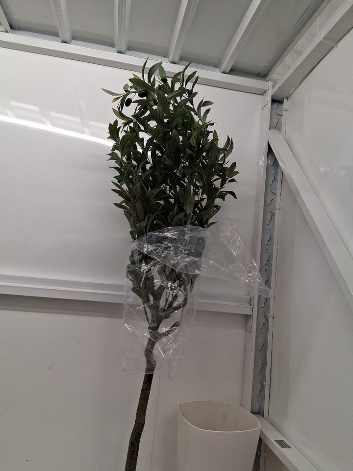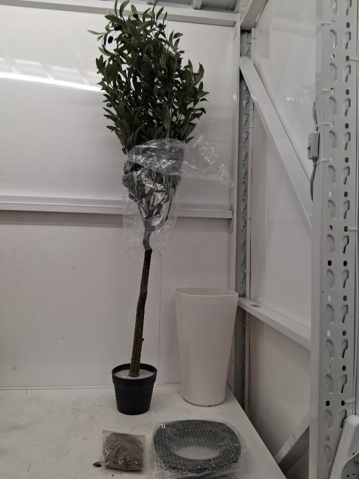 Please note the planter has minor scuffing and scratches and some olives have been detached from trees.