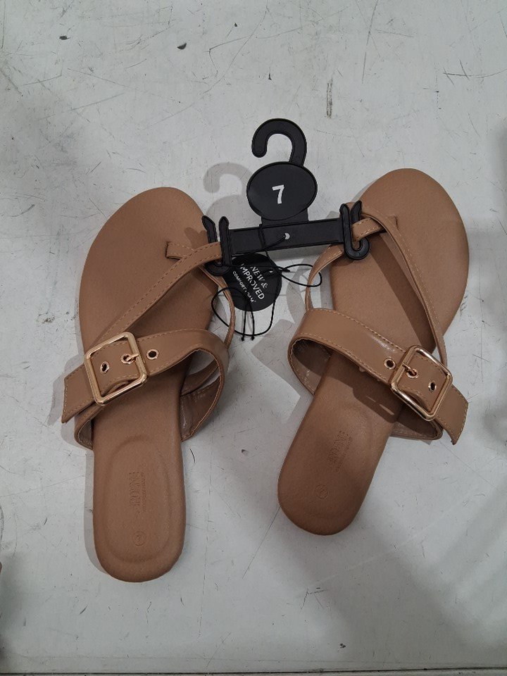women's Ardene Women's Toe Loop Flat Sandals - size 7 - beige