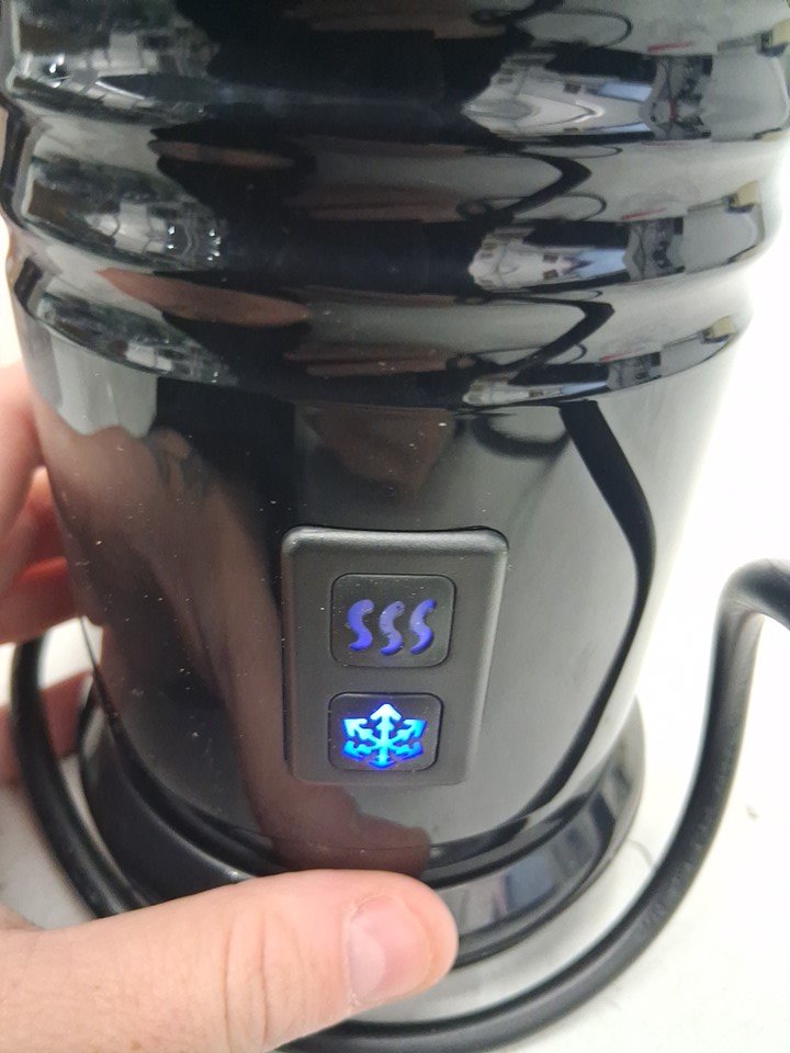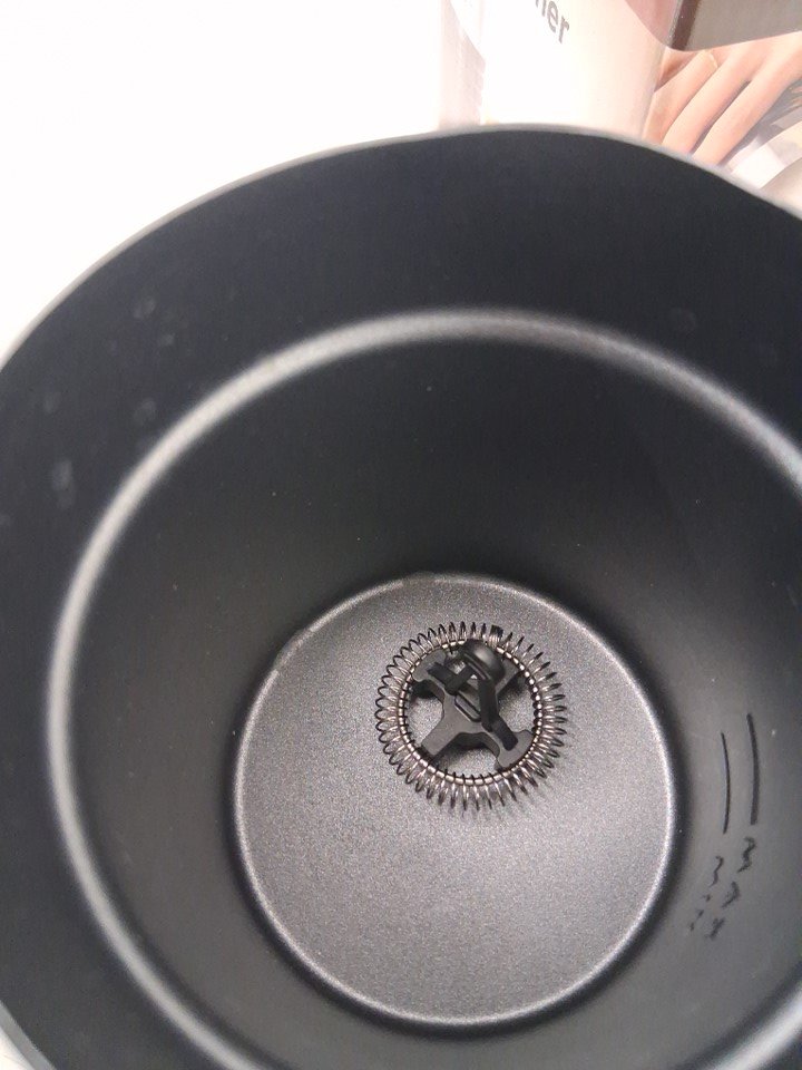 Milk frother has light water spots on inside. Has been tested for power and functionality