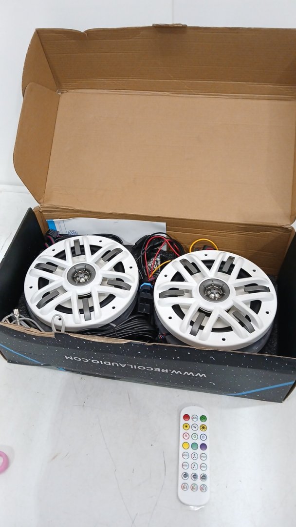 2pk recoil complete marine boat/ utv/ atv coaxial speaker system with rgb led lighting rings - 6.5" - white/grey grill options (model: m1-65k)