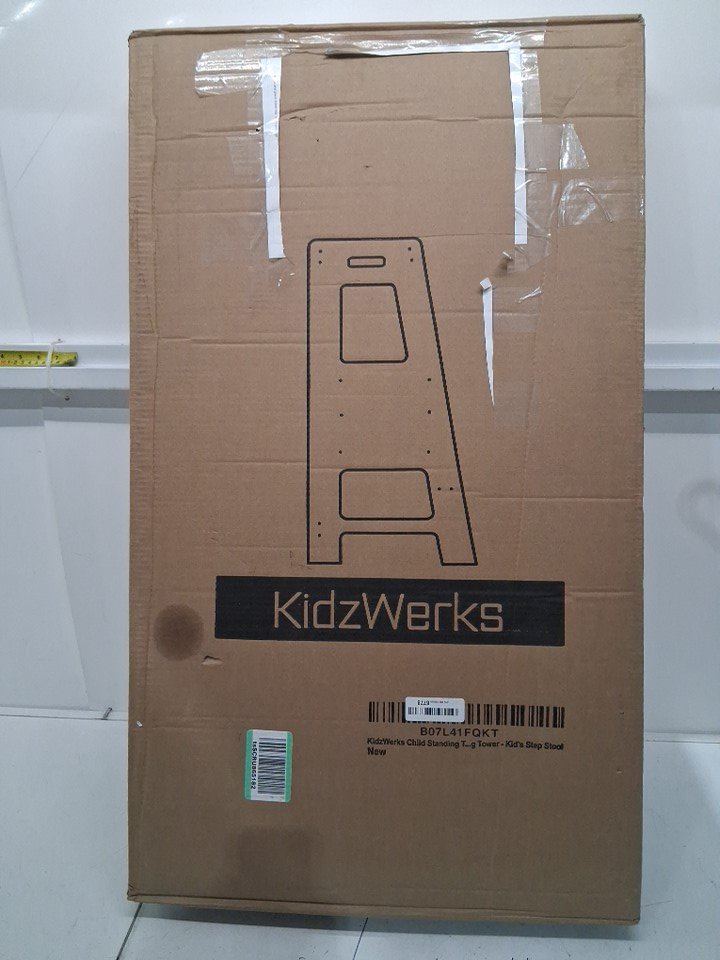 KidzWerks Child Standing Tower Kids Kitchen Step Stool Toddler Wood Stepping Stool - 19" x 35" x 16" - White