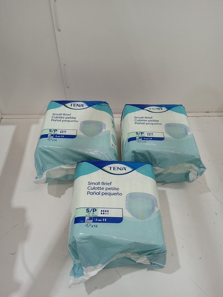 3 (12pk) unisex TENA Incontinence Briefs - small