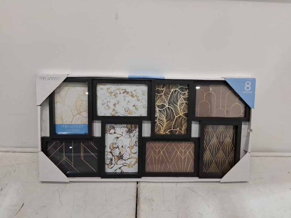 Melannco 8 Opening Photo Collage Frame, Displays Four 4x6 and Four 6x4 Inch Photos, 23'' x 1'' x 11'' - Black