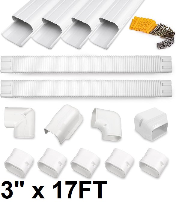 MOOITEK PVC Line Set Cover Kit for Ductless Air Conditioners - 3" x 17ft - white