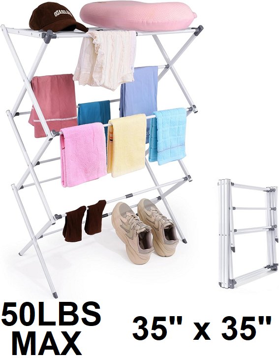 3-Tier Foldable Vertical Drying Rack - 35" x 35" - 50lbs max - white