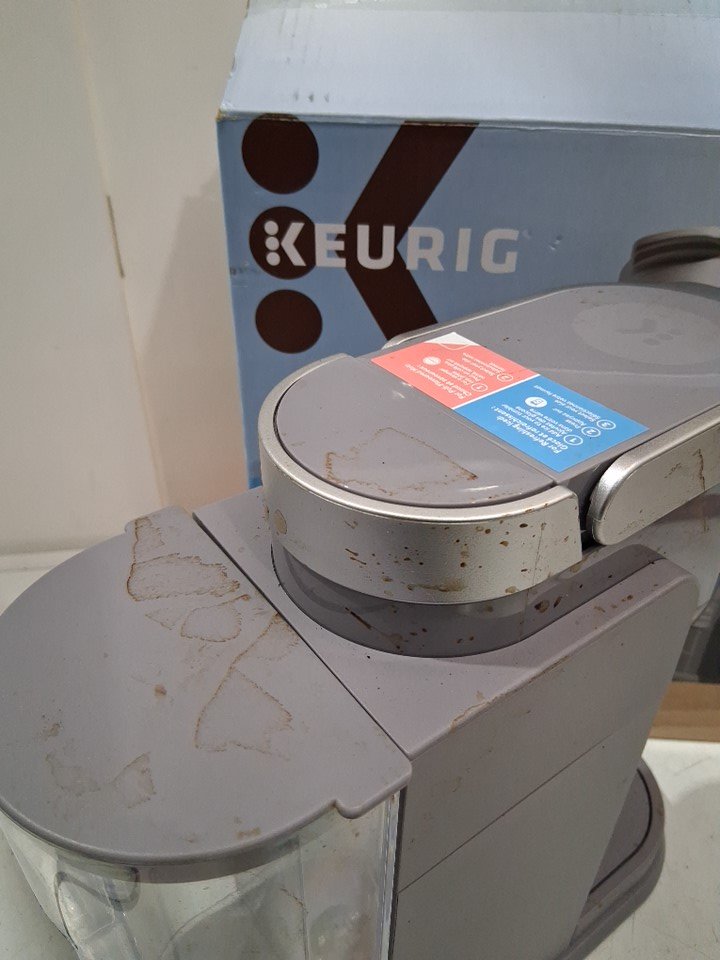 please note there is significant coffee/coffee grounds all throughout the Keurig from previous use and will need a thorough cleaning before use, tested for basic power