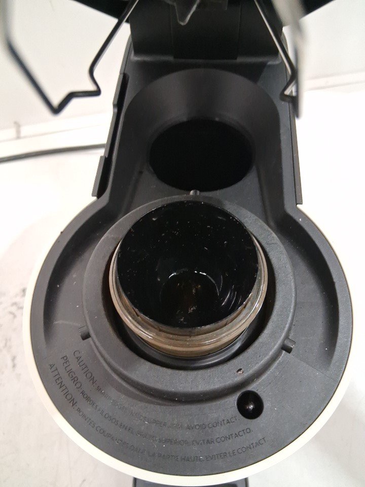 Item tested for power. Item has coffee residue and dust from previous use. (See photos)