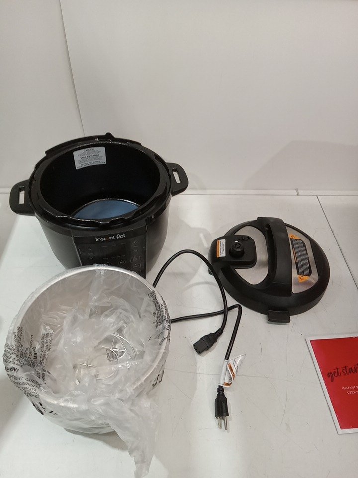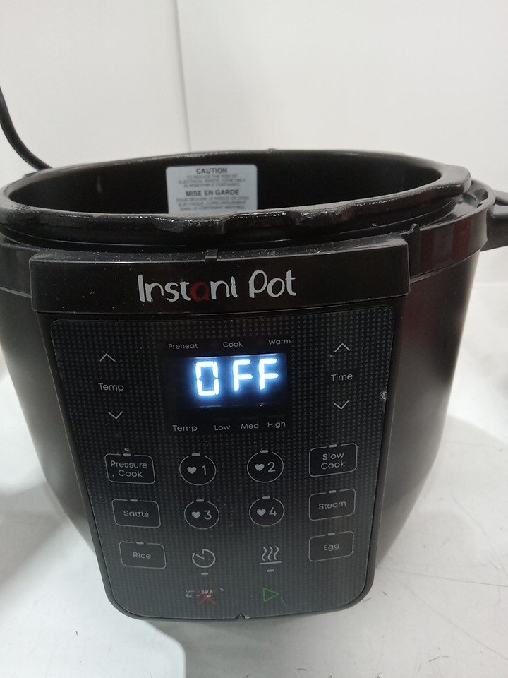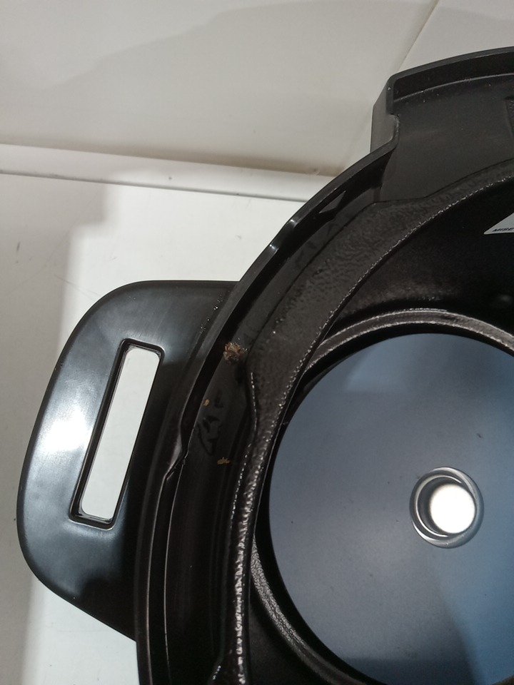 Some food debris in the rim of the pot and smells faintly of food. Can likely be cleaned.
