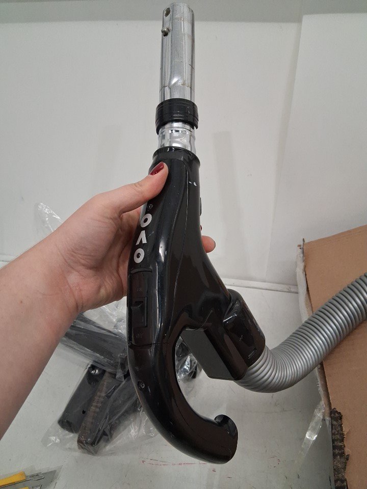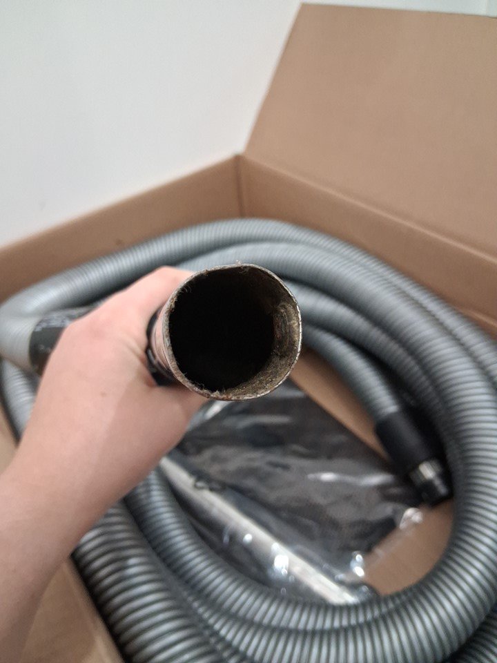 the hose shows signs of use, there is dirt in the hose and scuffs on the handle, the accessories appears new/sealed