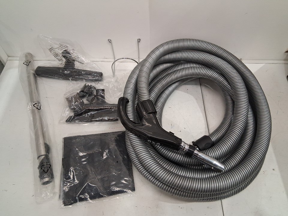OVO CENTRAL VACUUM DELUXE PLUS ACCESSORIES/attachments KIT FOR HARD SURFACES - 35FT HOSE - GREY - (MODEL: KIT-LV35DP-OVO)