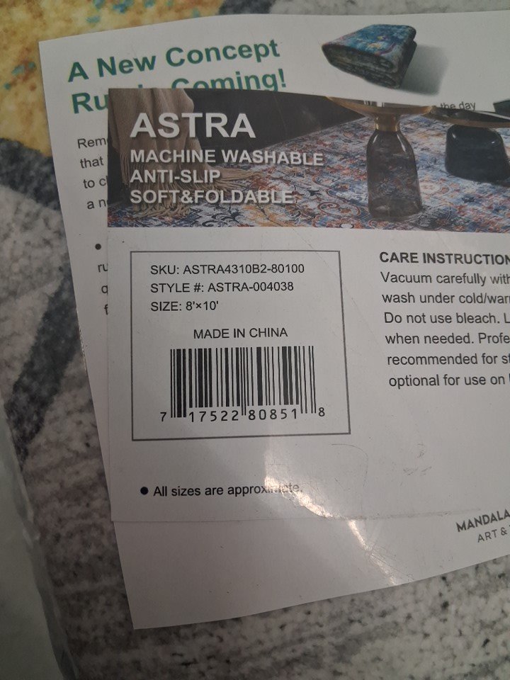MANDALA RUGS ASTRA COLLECTION MACHINE WASHABLE AREA RUG - 8ft x 10ft - MULTI-color (MODEL: ASTRA-004038 / astra4310b2-80100)