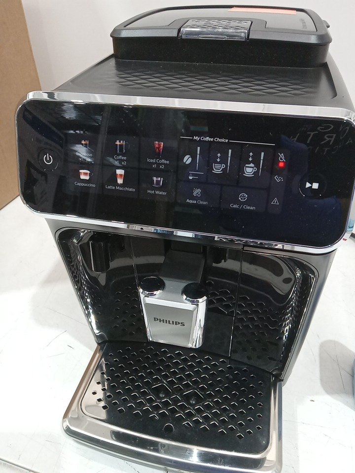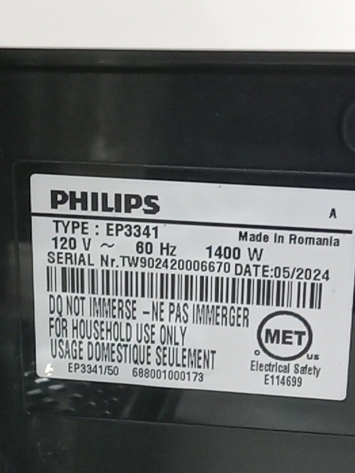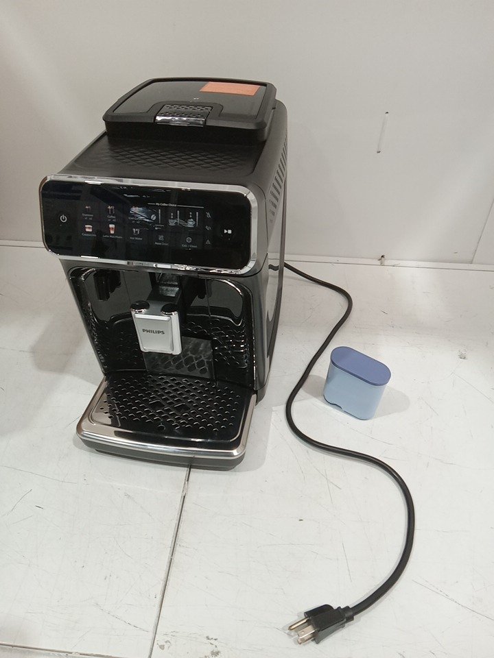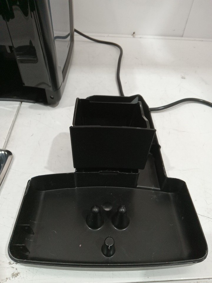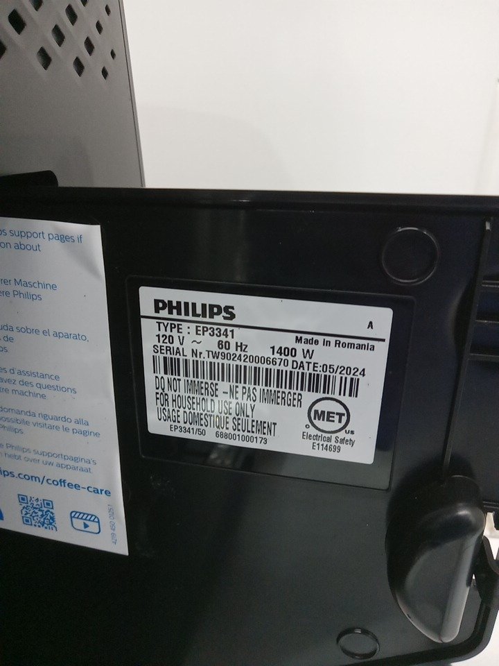 Please note that the all of the cleaning accessories, manual, LatteGo milk frother, and the red water flow arm on the drip tray are missing from the original packaging. Additionally, the left side of the drip tray has peeling plastic, and the top lid’s plastic frame is broken from previous use. There are coffee residues in the grinder and stains on the drip tray. Tested for basic power only. (Please see photos) This item will not be eligible for our warranty unless the machine was descaled & cleaned using the manufacturer's instructions. If you require additional time for our warranty in order to clean these machines, please reach out to us before your specified warranty deadline. Due to the high sensitivity and frequent upkeep of operation on these units, additional cleaning may be required. If not descaled with model specific cleaning product, the units may become clogged and will cause potential operational issues. Please refer to the manufacturers operations manual for detailed cleaning instructions.