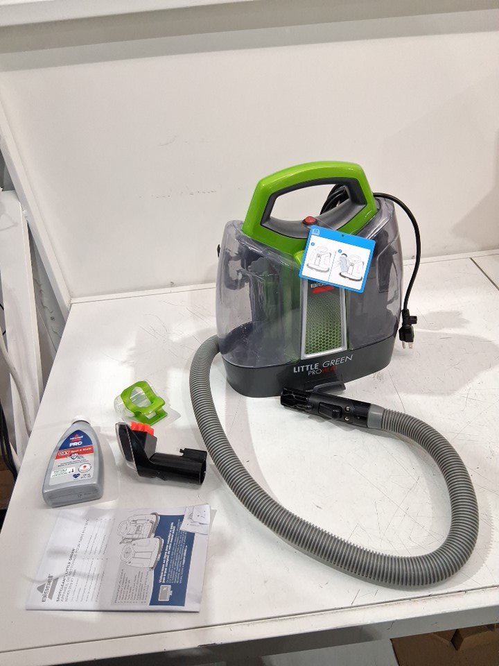BISSELL LITTLE GREEN PROHEAT PORTABLE DEEP CLEANER/SPOT CLEANER WITH SELF-CLEANING HYDRORInSE TOOL - GREEN/GREY (MODEL: 2513B / 2513n)