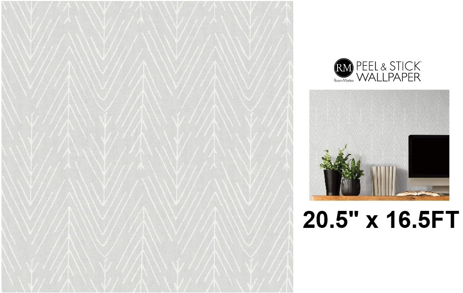 roommates Twig Hygge Herringbone peel and stick wallpaper - 20.5" x 16.5FT - grey/white (model:‎ RMK11672WP)