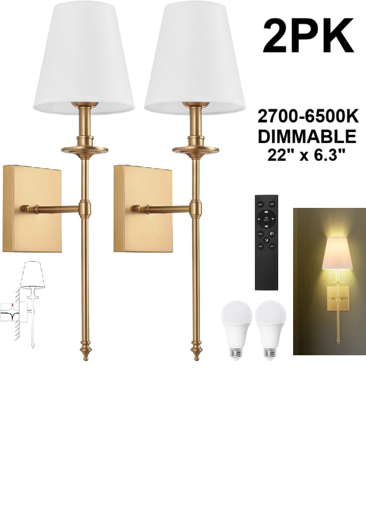 2pk Gooday dimmable led wall sconces with remote - 22"x6.3" 2700-6500k - brass