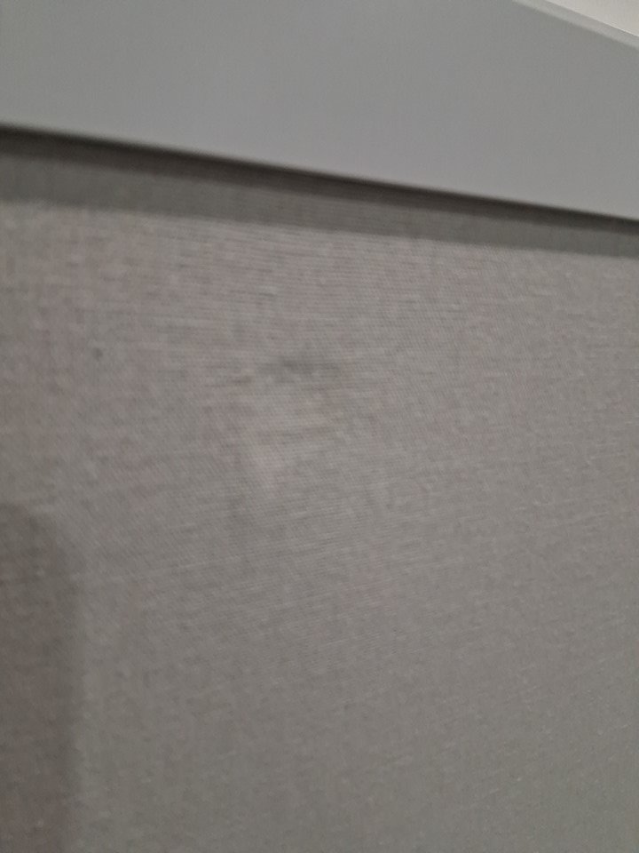 Missing hardware. Board has slight recess, no significant damage. (See photos)