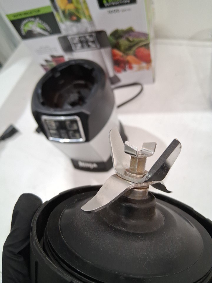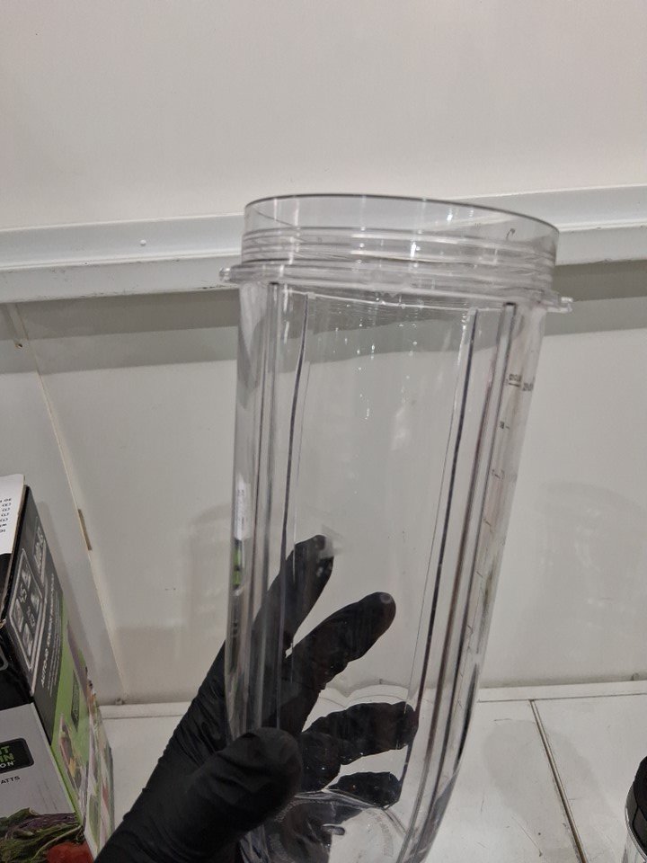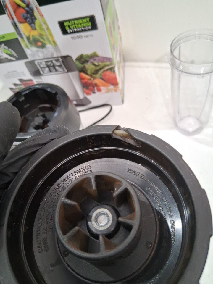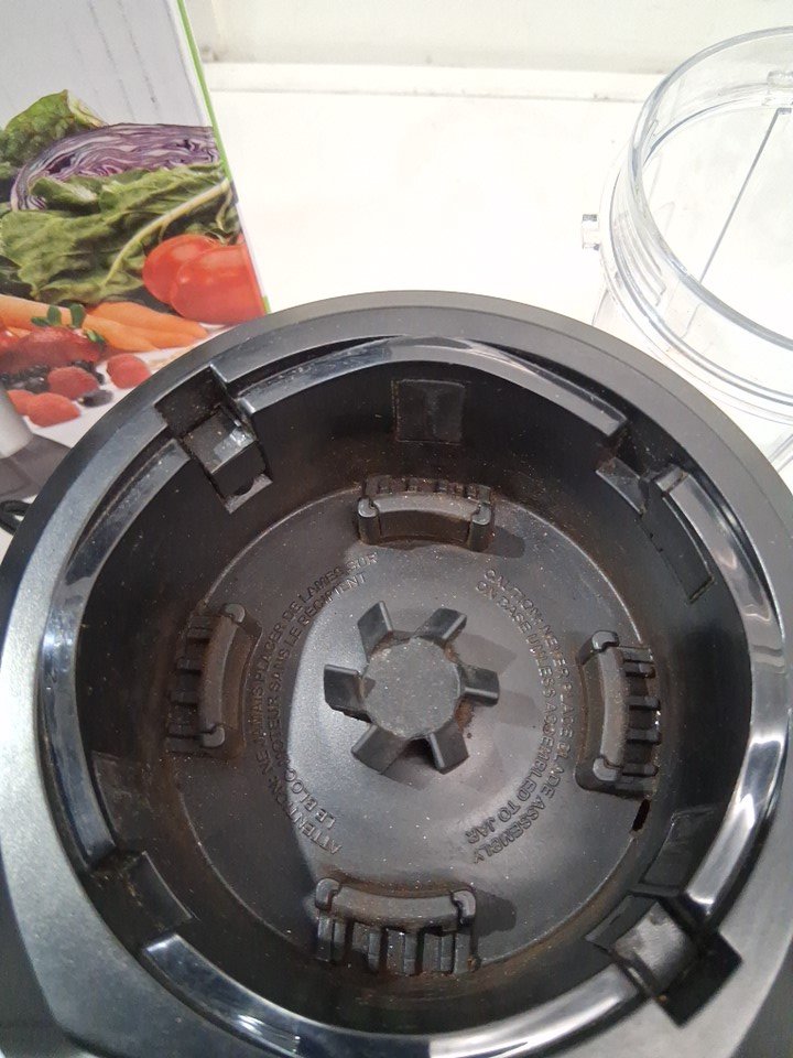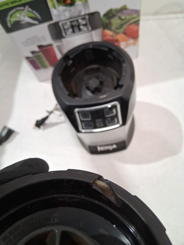 please note there is some residue and water marks all thought-out the base and the cups form previous use, as well the blade lid has a small chip in it but it does not affect the function. item will need to be cleaned before use