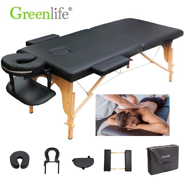 GREENLIFE EASY SPORTS PORTABLE 2 FOLD MASSAGE FACIAL TABLE WITH CARRYING BAG,HEAD REST, AND ARM RESTS - BLACK