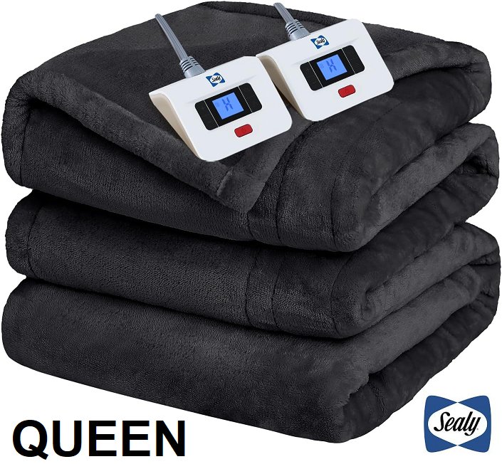 Sealy machine washable Electric flannel heated Blanket with 10 Heating Level and 1 to 12 hours auto shut off - queen - 84 x 90" - dark grey (MODEL: sl-fla-qcha)
