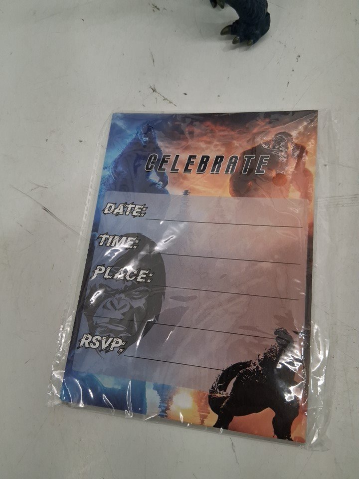 11PC Godzilla x Kong : The New Empire Battle Roar Godzilla Figure WITH 10 BIRTHDAY Invitation Cards - 11"