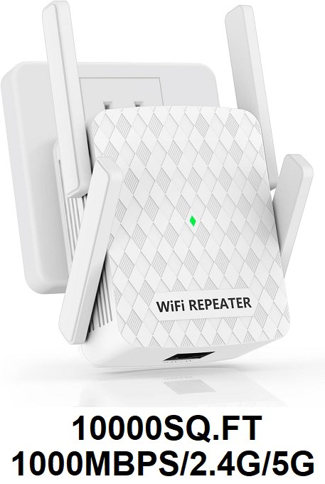 hosmmer WiFi Extender Signal Booster/Repeater - up to 10000sq.ft and 35 Device/1000Mbps/2.4G/5G - white