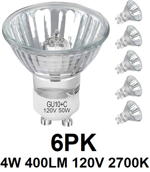 6PK GU10 LIGHT BULBS - 4W, 400LM, 120V, 2700K - (MODEL:HB-GU10)