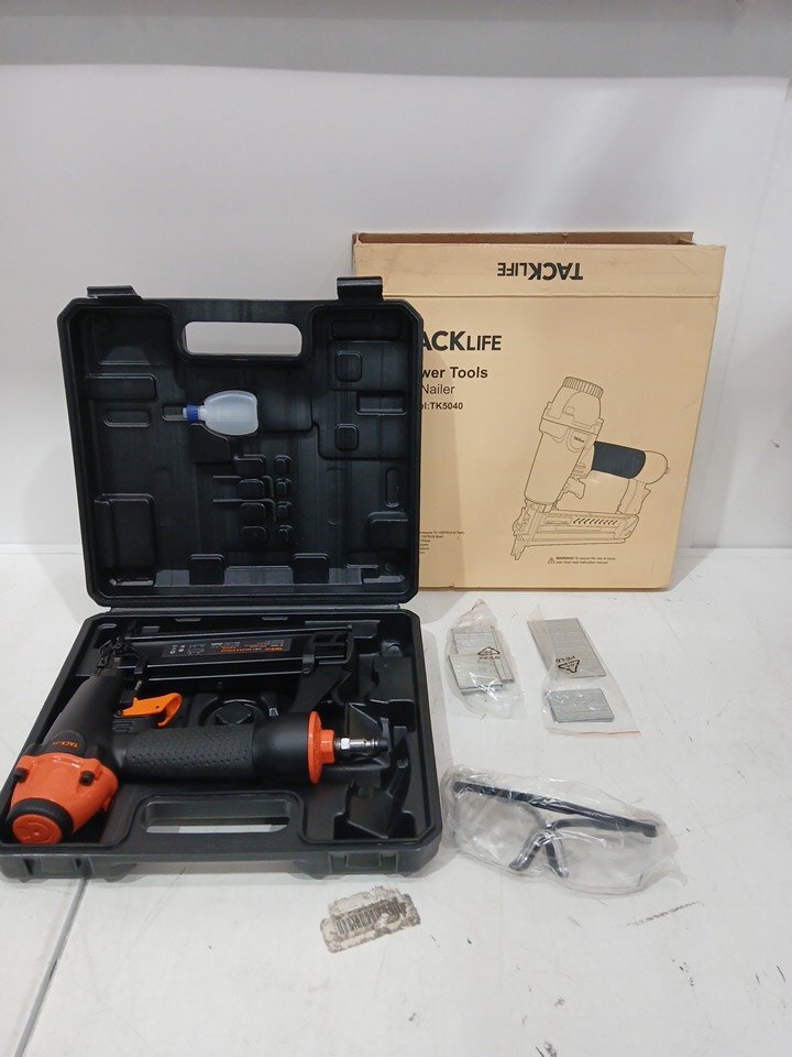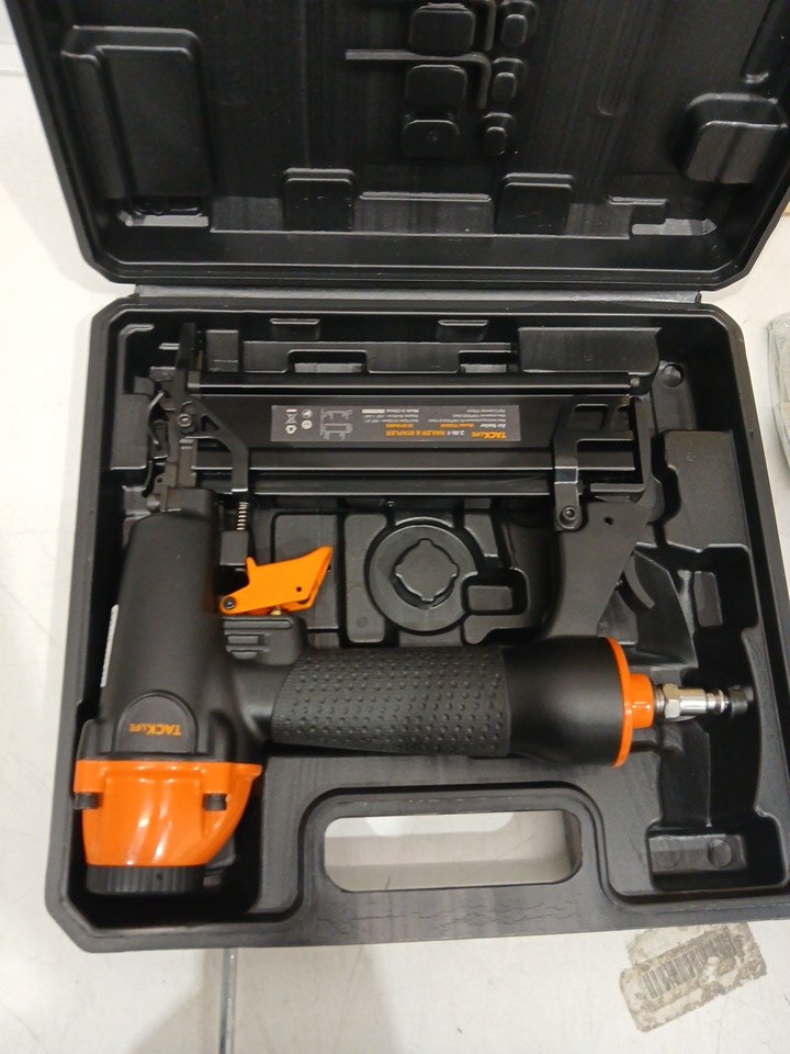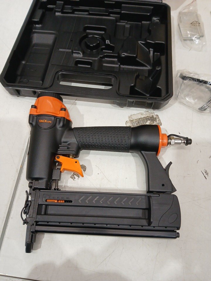 TACKLIFE 2-In-1 Pneumatic Brad Nailer - for brad nails and Crown Staples - black/orange - (model: tk5040)
