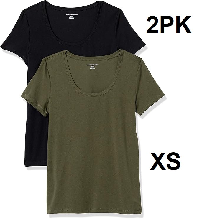 2PK WOMEN'S Amazon Essentials Short Sleeve Scoopneck Tunic - extra small - black/olive green