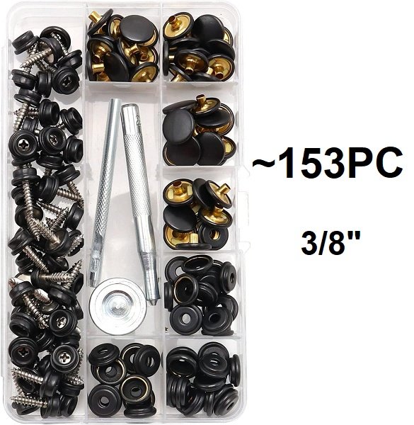 approx 153pc weiwei canvas snap kit, metal screws upholstery fasteners, marine grade - 3/8" - black/gold/silver