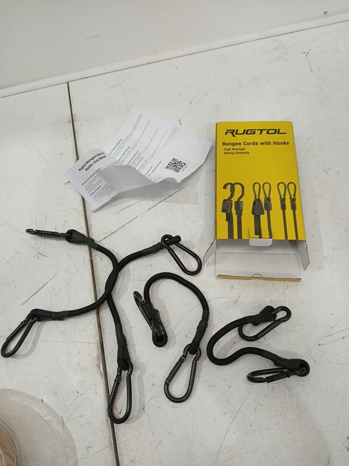 4pk rugtol premium latex bungee cords with carabiners for Camping, Tarps, Bike Rack, Tent - 12" each - black