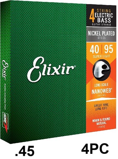 4pc Elixir Strings Electric Bass Strings, 5-String, Super Light, Long Scale NANOWEB Coating - .45,