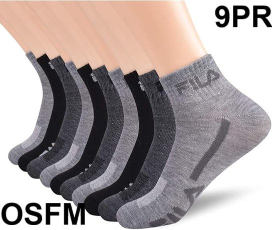 9pr men's fila Racing Striped Quarter Socks - osfm - BLACK/GREY