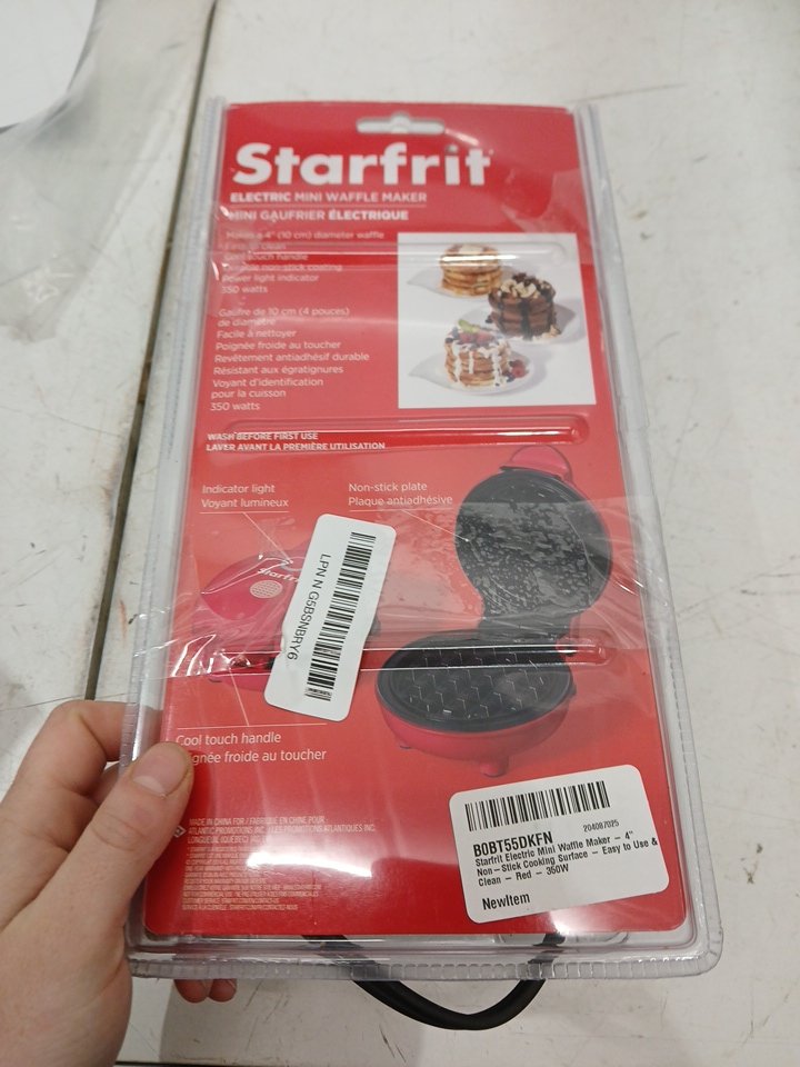 starfrit electric nonstick mini waffle maker - 4" - red - (model: 024725)