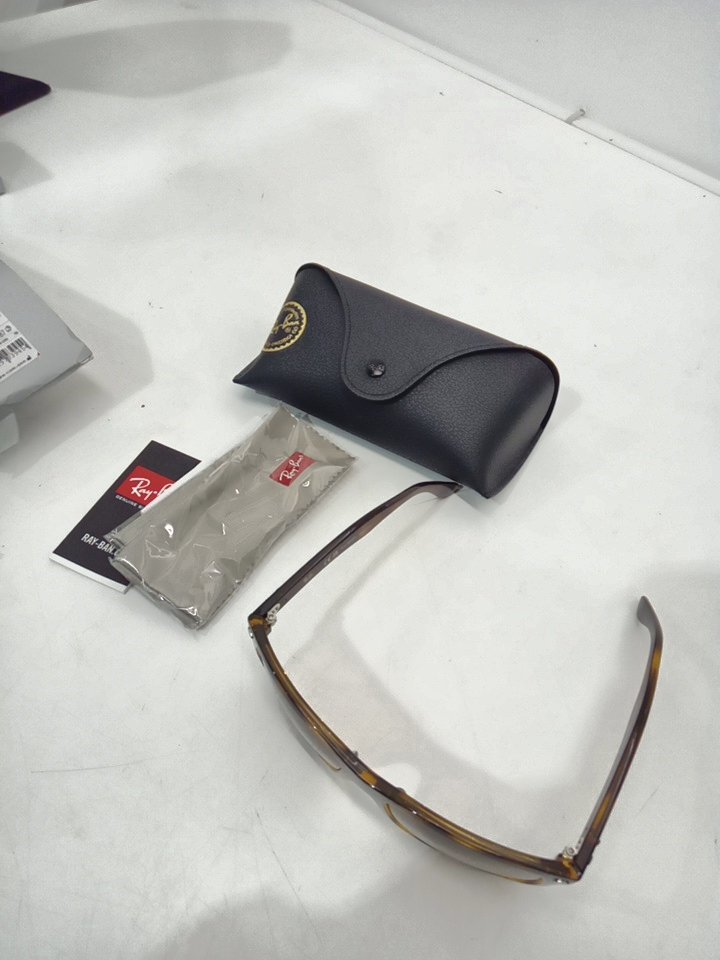 womens ray ban boyfriend two plarized sunglasses- havana/polar brown ( rb4547)