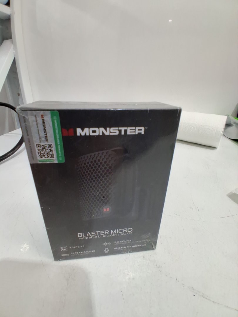 monster blaster micro clip on wireless wearable bluetooth speaker - ipx7 waterproof - blue (model: ms62106)