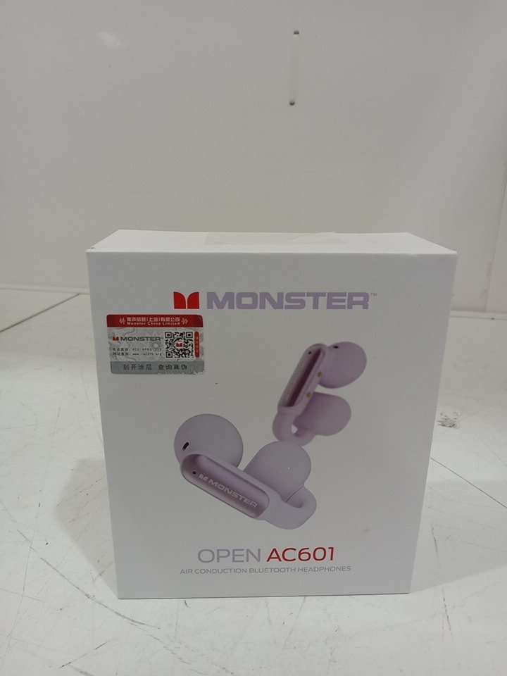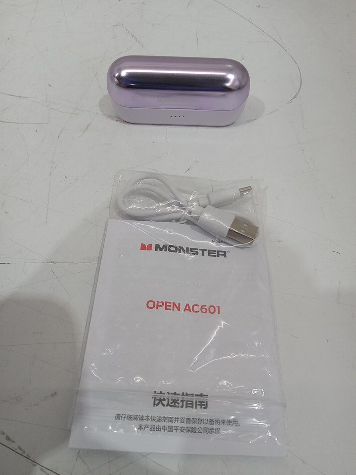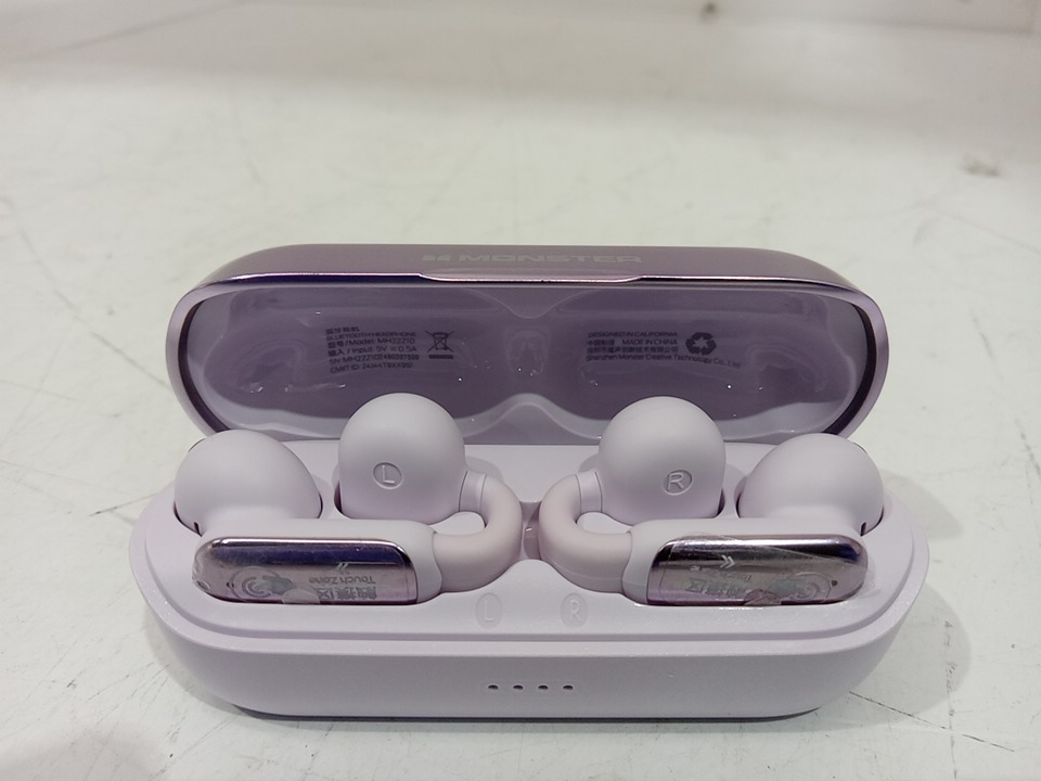 Monster Comfort Clip-On Bluetooth Earbuds - waterproof/ touch control/noise cancellation - purple (model: ac601)