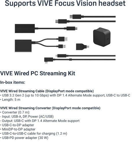 Vive Wired Streaming Kit — DisplayPort Mode Compatible for Vive Focus Vision - Windows - black