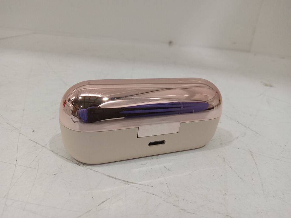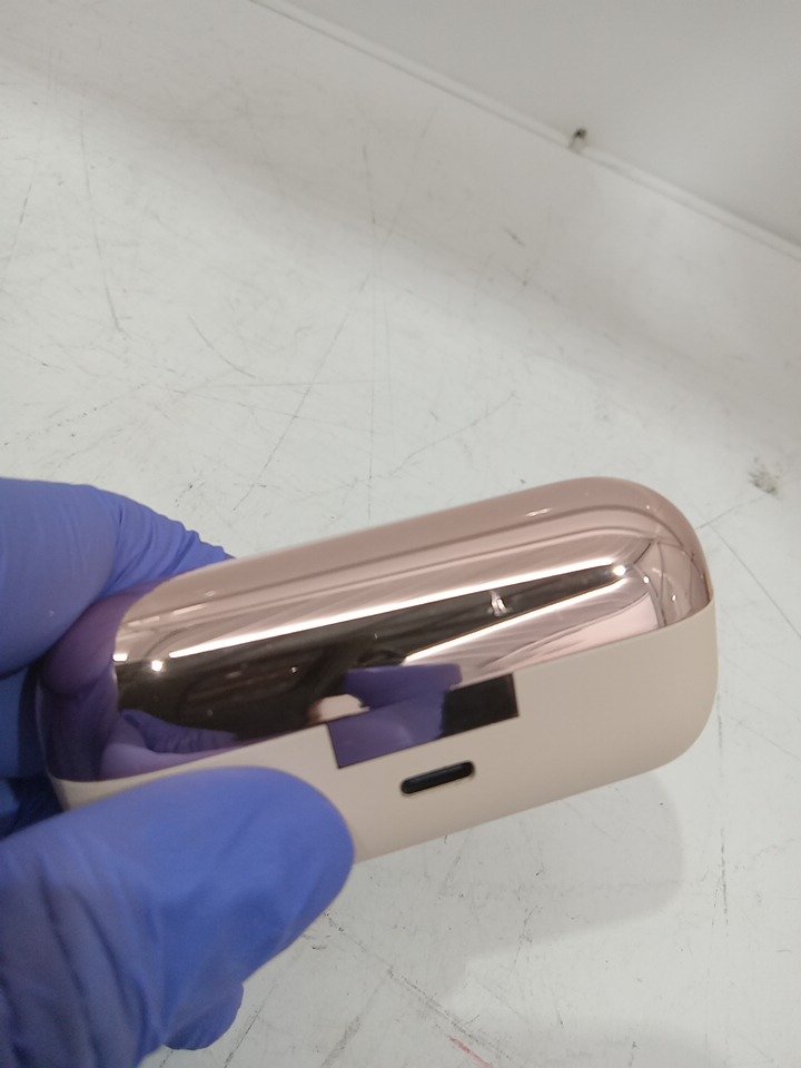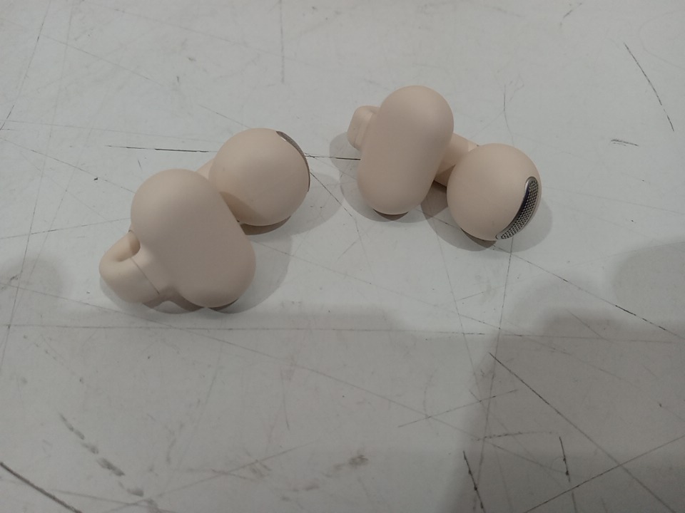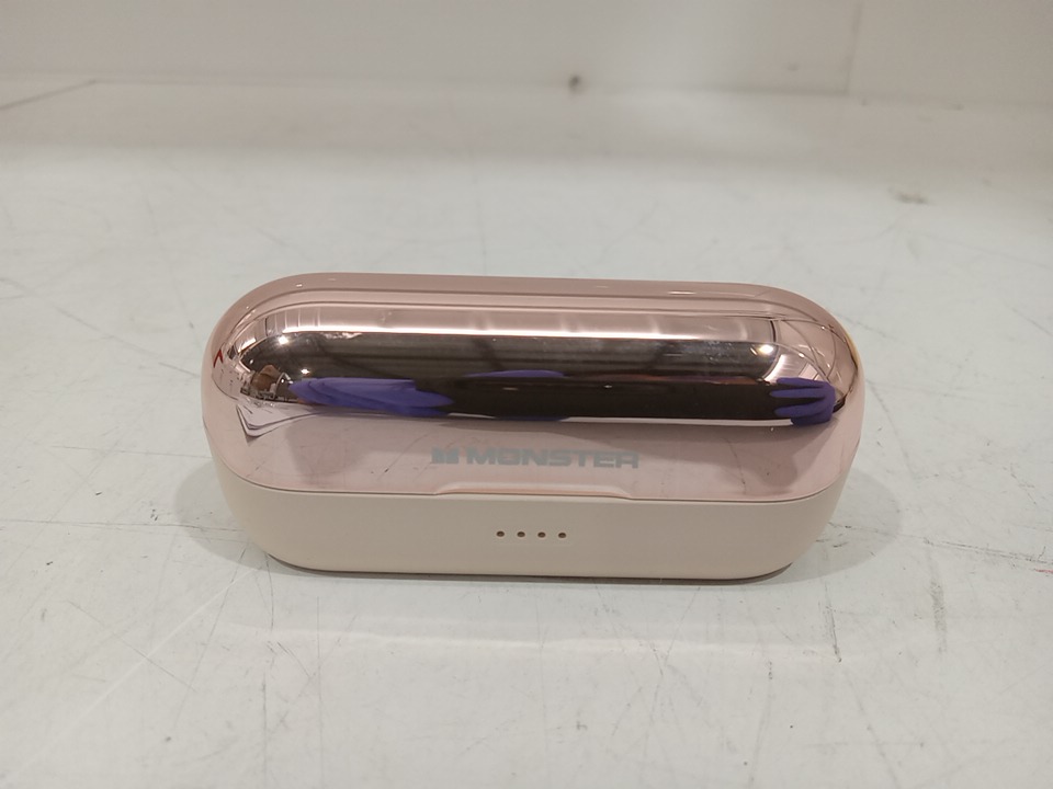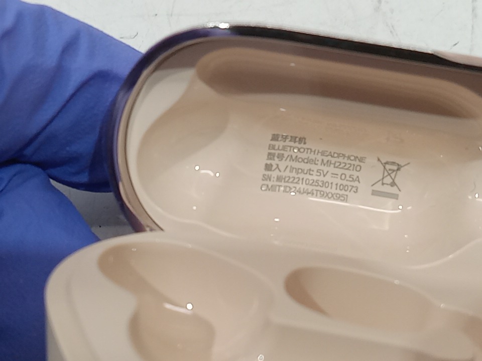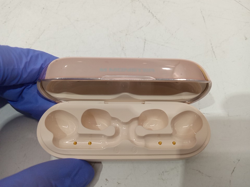 There are minor scratch marks on the charging case and dust residue on the earbuds from previous use. Tested for power and functionality. (Please see photos)