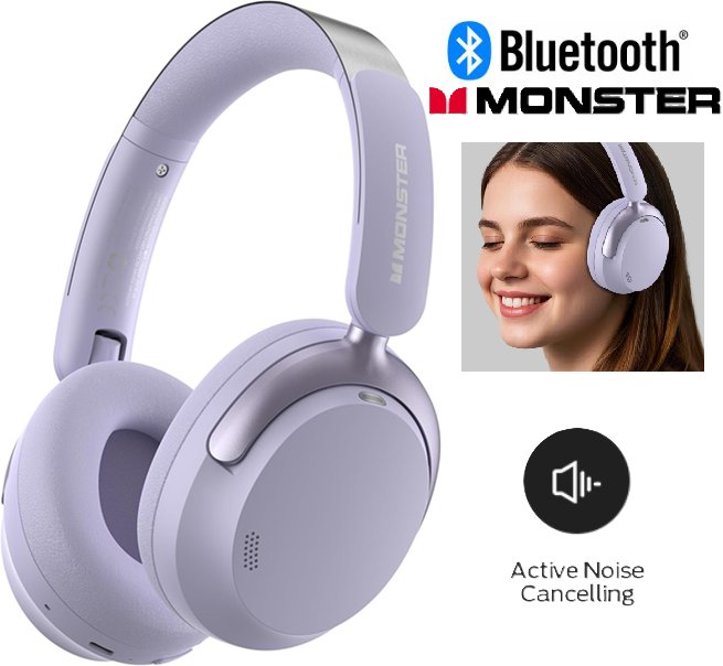 Monster Persona 3rd ANC Active Noise Cancelling Bluetooth Headphones - Purple (Model : Persona 3rd ANC)