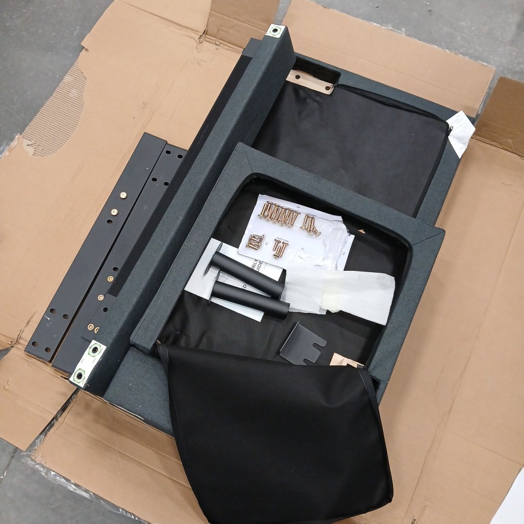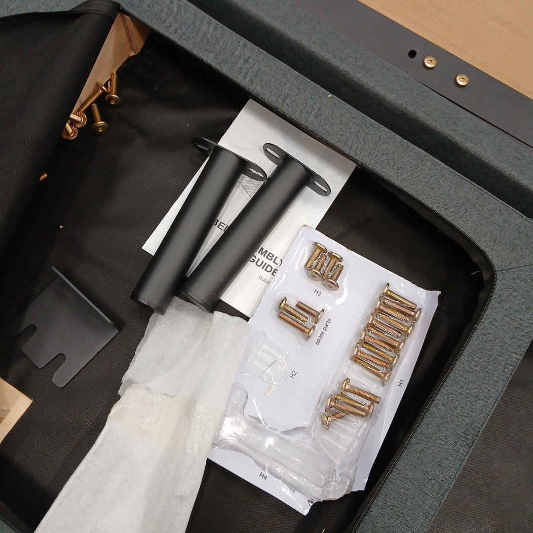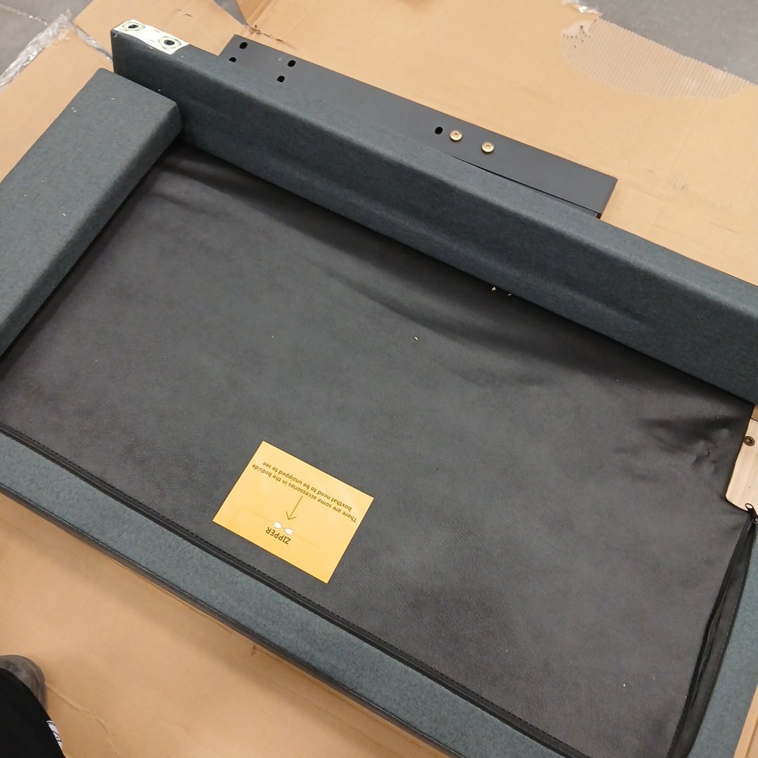 Item has been previously assembled and used, minor amounts of hair present within box. Item is missing wood slats.