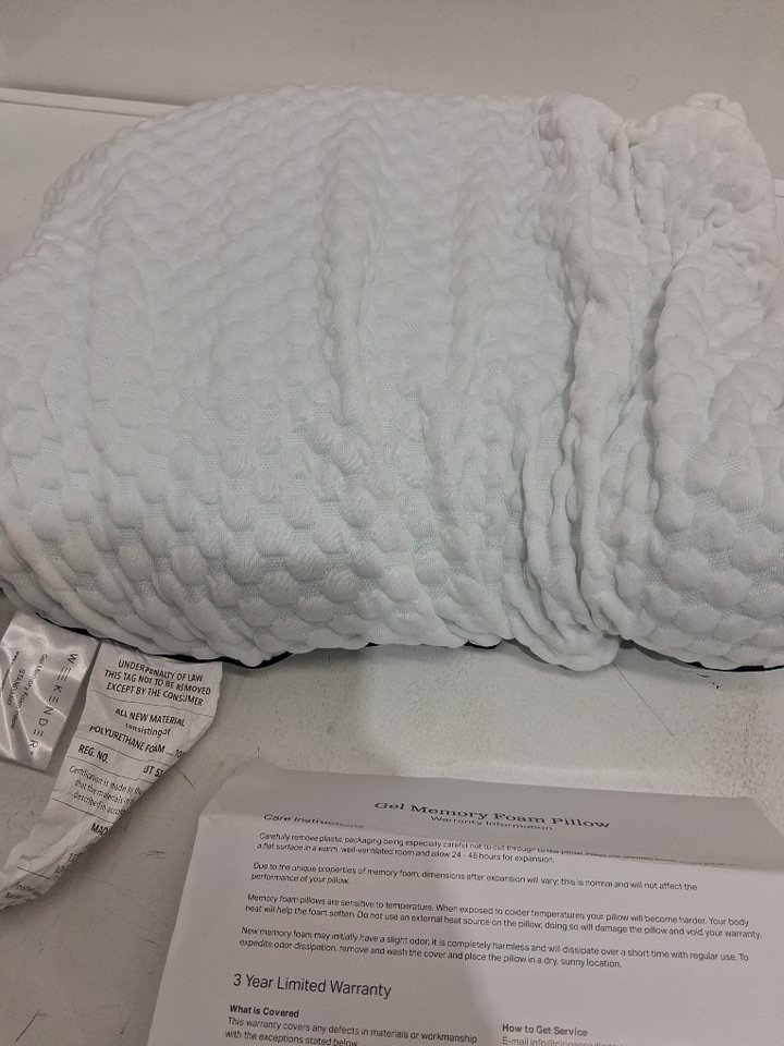 weekender ventilated gel memory foam pillow with washable cover - 16" x 25" - standard - white (model: wkss30gf)