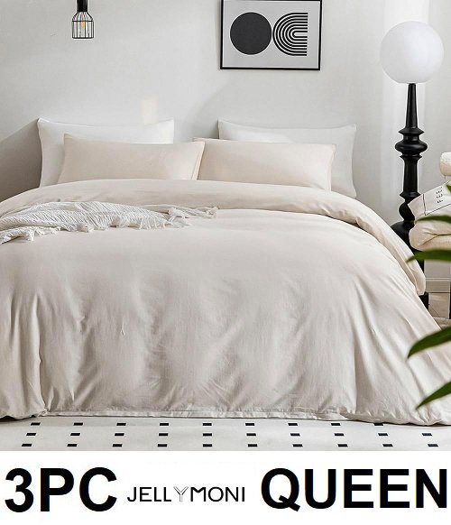 3pc JELLYMONI Duvet Cover 100% Washed Cotton Comforter Cover - Queen - beige