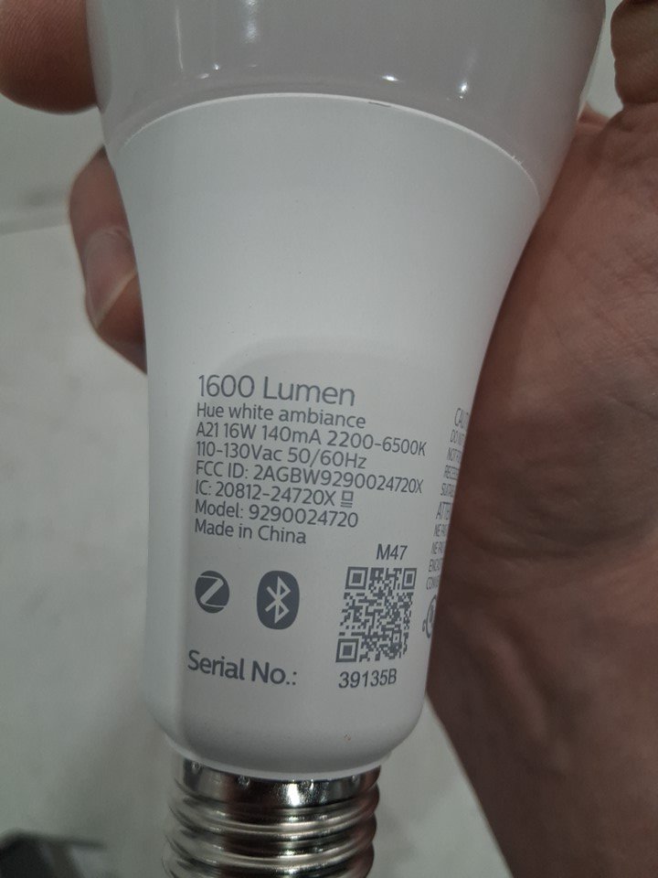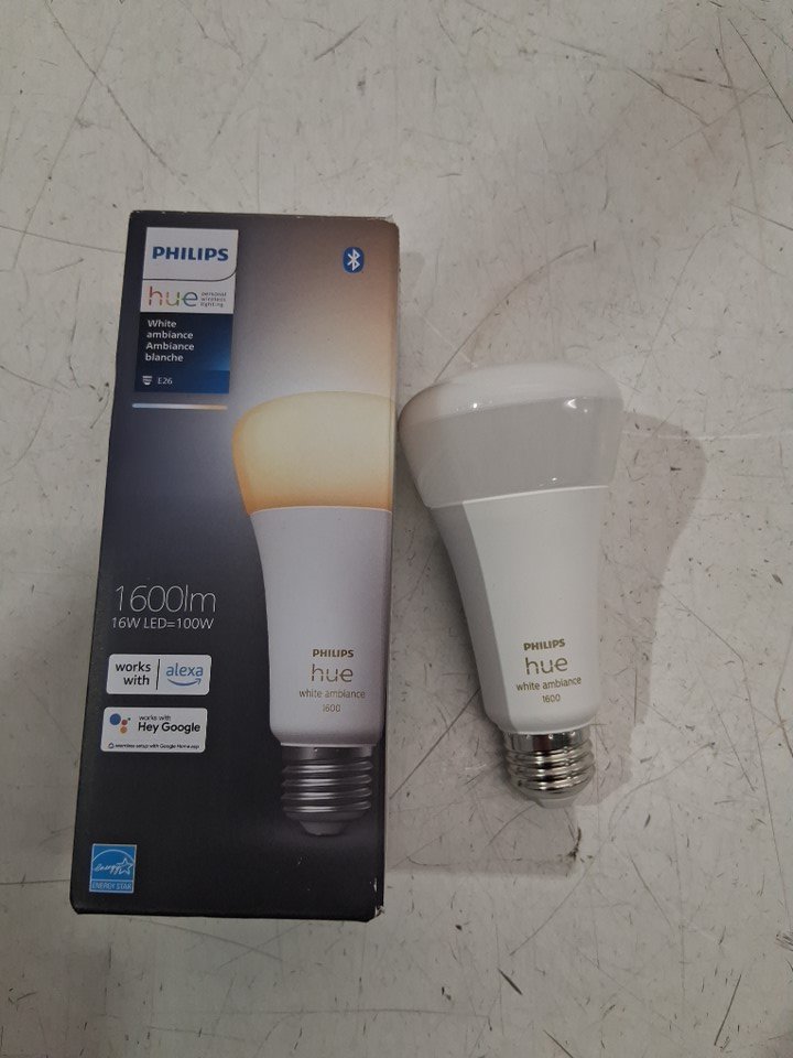 philips hue led voice-activated smart bluetooth light bulb - 1600lm - 2200K-6500K - 110-130VAC - e26 base - compatible with zigbee/alexa/google assistant - white (model: 929002472002)