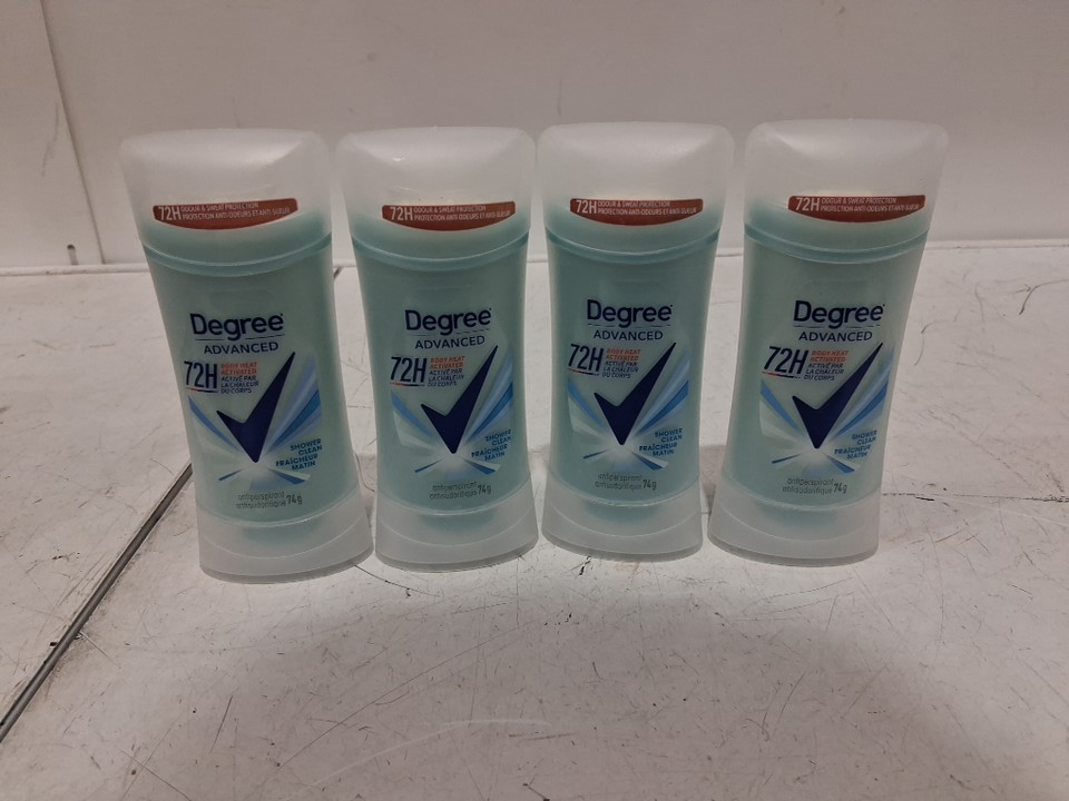 4pk degree Advanced Antiperspirant Deodorant Stick for 72H Sweat & Odor Protection - 74g - shower clean