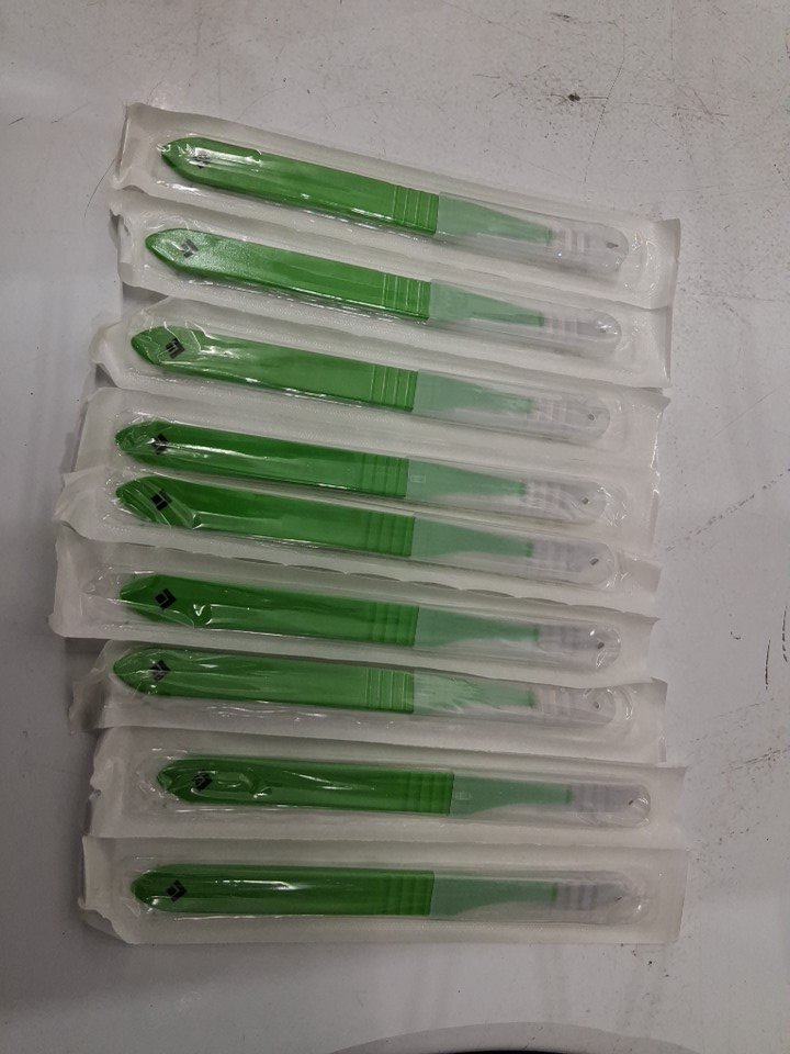 10pk Cynamed Disposable Surgical Scalpel with Plastic Handle - Fitment #10 - stainless steel - green - (model: hb0188)