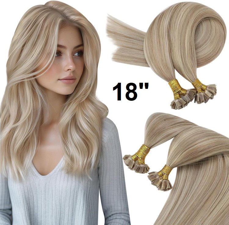 Sunny Hair Human Hair Keratin Fusion Flat Tip Hair Extensions - 18" - warm ash blonde highlights